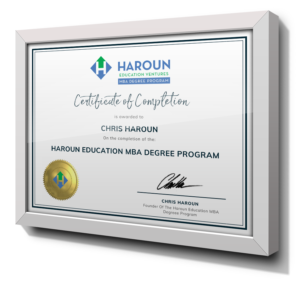 The Haroun Education Ventures MBA Degree Program will always remain up to date and will only teach students concepts that are based on Chris’ real life practical experience. Upon completion of the Haroun Education Ventures MBA Degree Program, students will be more competitive than MBA graduates of other universities as they will learn all major aspects of business from a practical perspective and not based on theoretical concepts that traditional business schools teach. The Haroun Education Ventures MBA Degree Program will teach all major practical topics taught in the best MBA programs and much more. Plus the Haroun Education Venture MBA Degree Program will be FUN and EDUTAINING!!!!